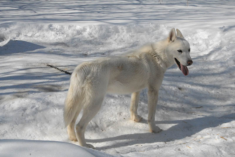 - Wasagaming of Seppala - female - Born: 2 November 2006. (PYOTR OF SEPPALA x ALANA OF SEPPALA)(This lovely, sweet blue-eyed white girl could be available on lease for a litter to the right person who's close enough to our location; at present it's unlikely we'd sell her outright.)
